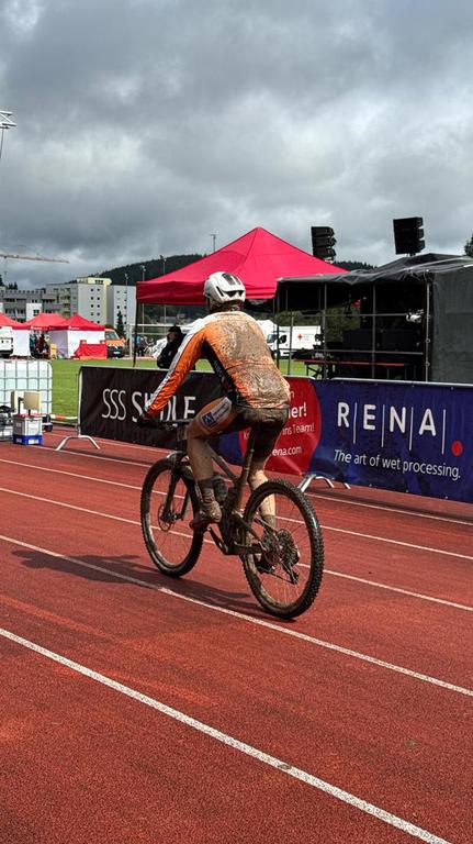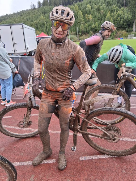 Das Schwimmen begann mit einer Vorstellung aller Elite-Athleten*innen. Jeder wird mit Namen und Nationalität aufgerufen und springt dann ins Wasser. Leider war wieder Neoprenverbot, was für mich nicht von Vorteil ist. Die Käte des Wassers machte mir in der ersten Radrunde etwas zu schaffen. Außerdem wurde ich beim Aufsteigen nach einem sehr steilen Anstieg umgestoßen. Das Rennen schien vorbei zu sein, weil der Umwerfer fixiert war. Nach einigen Versuchen konnte ich ihn lösen und ging nach einer zweiten schnelleren MTB-Runde als 8. auf die sehr technische, steinige, bergige Laufstrecke. Genial für mich. Den Platz konnte ich beibehalten und hatte mein Ziel in den Top Ten zu landen erreicht.