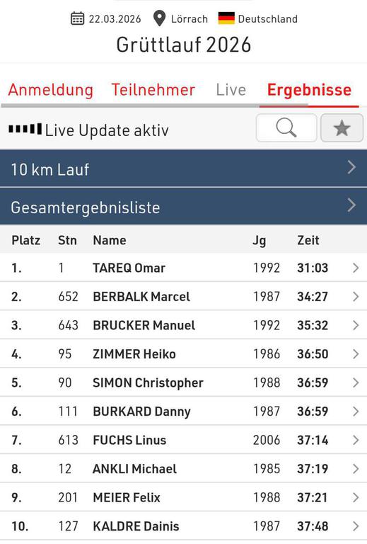 Laufbericht – Rheinfelder Lauftag (10 km)Christopher Simon – Schauenberg Racing TeamSonntag, 15. März | Start: 12:30 Uhr | Europa Stadion Rheinfelden